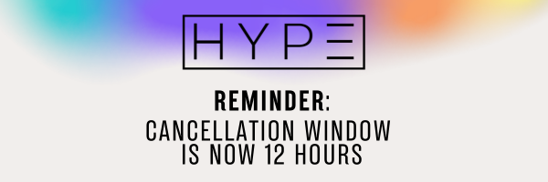 You may cancel your class up to 12 hours before the start time without any penalty, using either our website or the HYPE Fitness app.