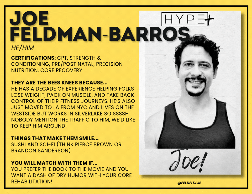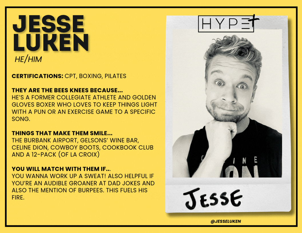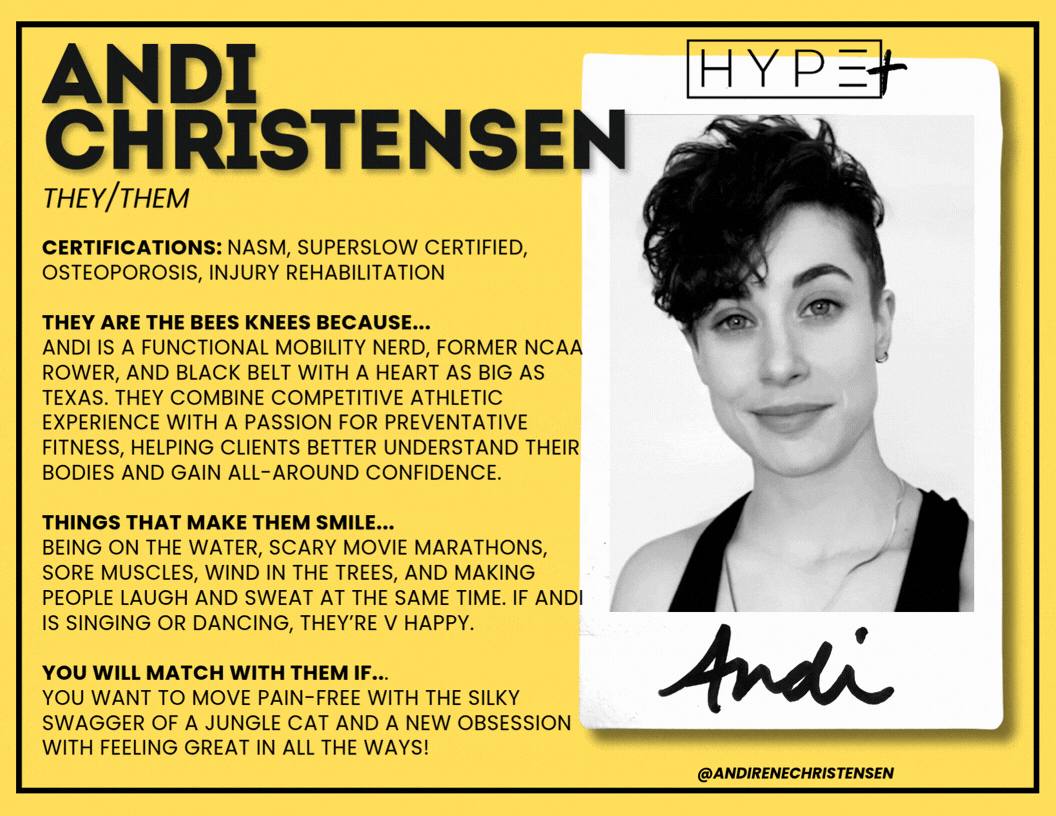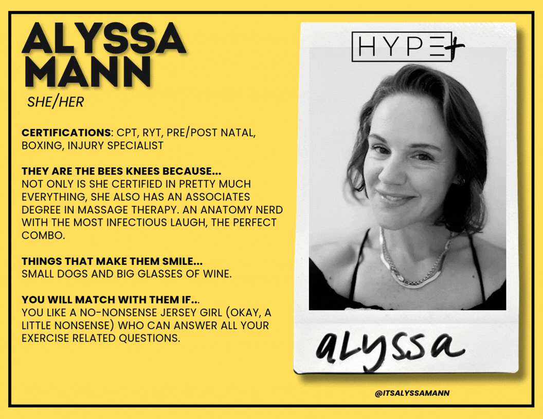 HYPE+ (“HYPE plus”) is a dedicated private training studio for clients looking to add a personal touch to their training. Our team of fitness professionals are certified in dual modalities - Personal Training and Group Fitness, allowing our clients to cross-train with their favorite motivators during 1:1 HYPE+ personal training sessions OR by jumping into one of our dynamic group fitness classes.